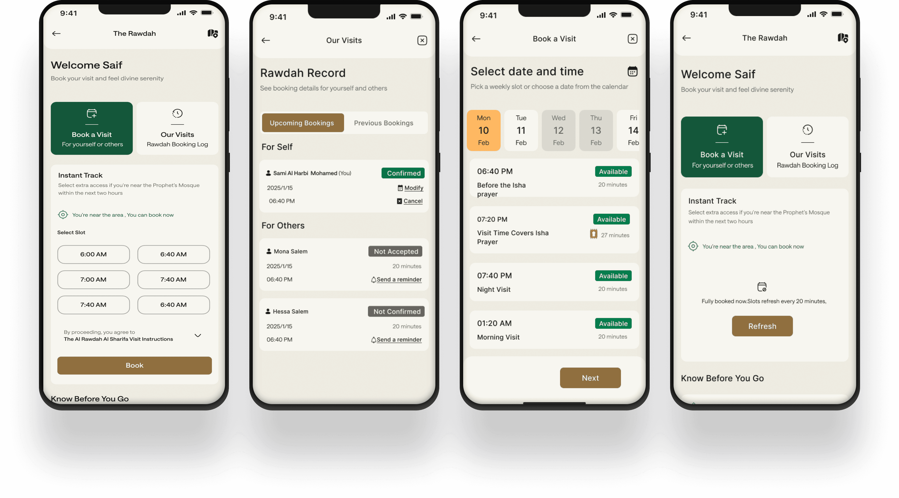 Why This Worked : When you're physically near the Prophet's Mosque the app shows You're near the area, you can book now. Slots refresh every 20 minutes from cancellations and no shows